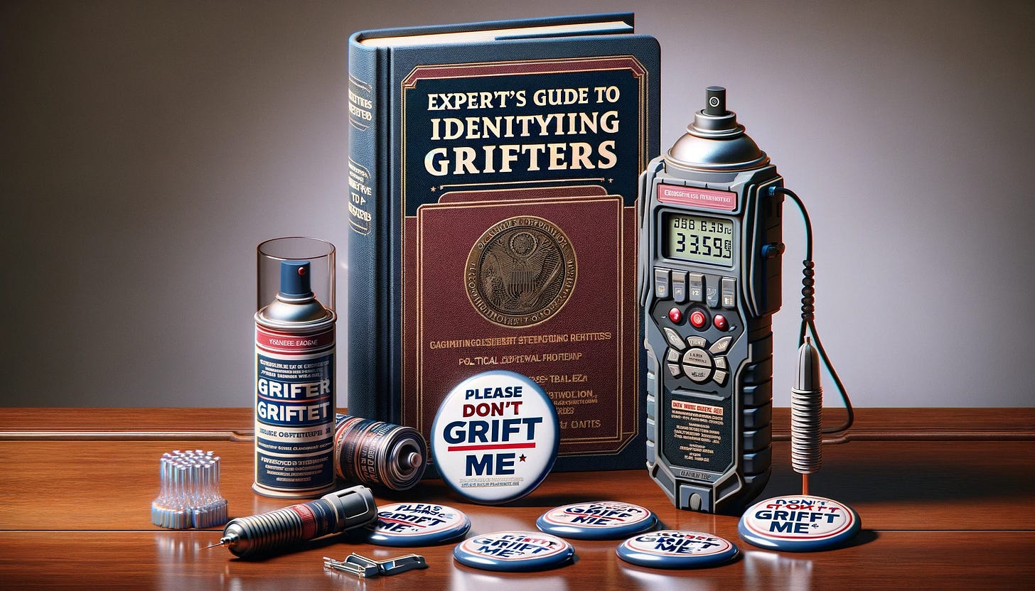 Grift Reveal Spray. If you suspect someone is a grifter, just spray him with my patented spray. If he says, “Hey! Stop spraying me! I’m just trying to grift you!” then you’ve found a grifter!
