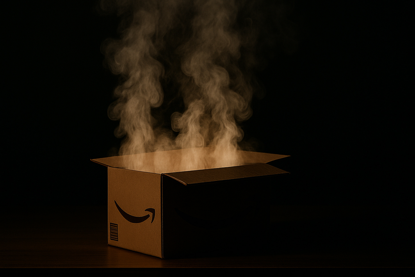 “We’re fine,” Ethan Hunt said, “what we have to do now is focus.” Smoke started coming from the Amazon box.