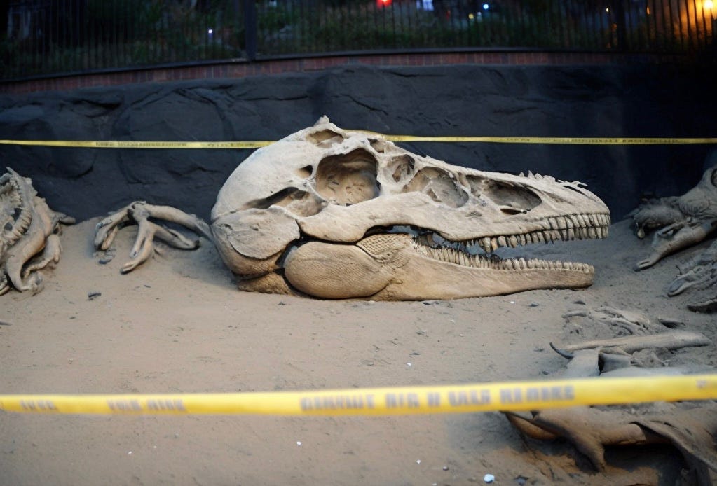 "Here's what I think." Graham shifted in his chair. "I think maybe the dinosaurs didn't go extinct from natural causes. Maybe they were... murdered."